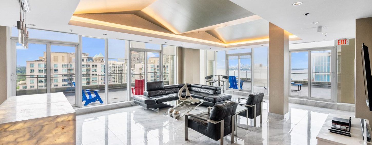 A must see! Welcome to the Prestigious Voyager by the Waterfront. This spacious suite overlooks lush, beautifully landscaped courtyard. Den has a door and it is large enough for 2nd Bedroom! 2 Separate W/O to balcony, american cherry hardwood, slate floors in kitchen & entrance. Granite & cultured marble counters, S/S appliances, maple cabinets, mirrored backsplash, california shutters throughout! Parking and Locker included! Condo fees include water, heat and hydro! Steps to the waterfront, trails, parks, restaurants, amenities transit & hwys. State of the art amenities including golf room, gym, pool, library, guest suites, sky lounge, rec center, massage room. Don't miss visit to the sky lounge and rec centre when visiting the property.